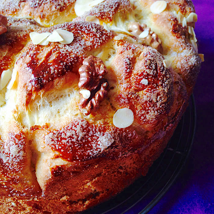 The Italian Panettone and the Bulgarian Sweet Easter Bread have a lot in common. In essence, the Italian Panettone does not have any turkish delights inside only sultanas and sweetened orange peel. You may follow all recipe steps up to step 7 and then instead of the Bulgarian egg yoke, sugar and nuts topping use the Italian almond paste topping. Then bake as instructed in the recipe below.